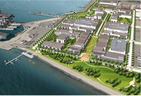 The City of Alameda is offering the Lab a parcel of land at Alameda Point at no cost. The city has also enlisted a development team, Mission Bay Development Group and Edgemoor Real Estate Services, for the Lab that has previous experience working with a UC Research Campus (Mission Bay). The team understands the parties’ long-term needs and has a proven track record in public/private partnerships. They have a special master infrastructure team to handle utility installation and roads, as well as the Lab’s construction needs.