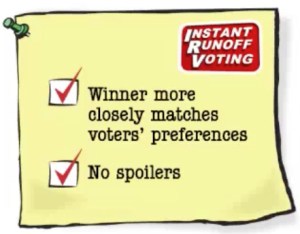 The conversation I have with people goes something like this: “Ranked-choice voting is hard for voters (but not me) to understand—to wrap their head around.” I respond by saying, “There’s nothing hard about ranking your first choice, your second choice, and your third choice. The computer does the rest.” Next comes, “Yeah, I know. But then you get something like what happened in Oakland where Don Perata didn’t win because most of the voters there chose him as their third or later choice.” To which I say, “Then democracy won because the result reflected the will of the majority.” Dead silence.