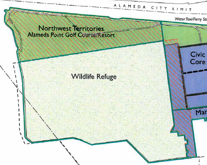 The environmental review process for Alameda Point has begun. Attached to the city’s notice of preparation, the proposed zoning map shows a couple of disturbing changes. The city has redrawn boundaries and changed a land-use designation.