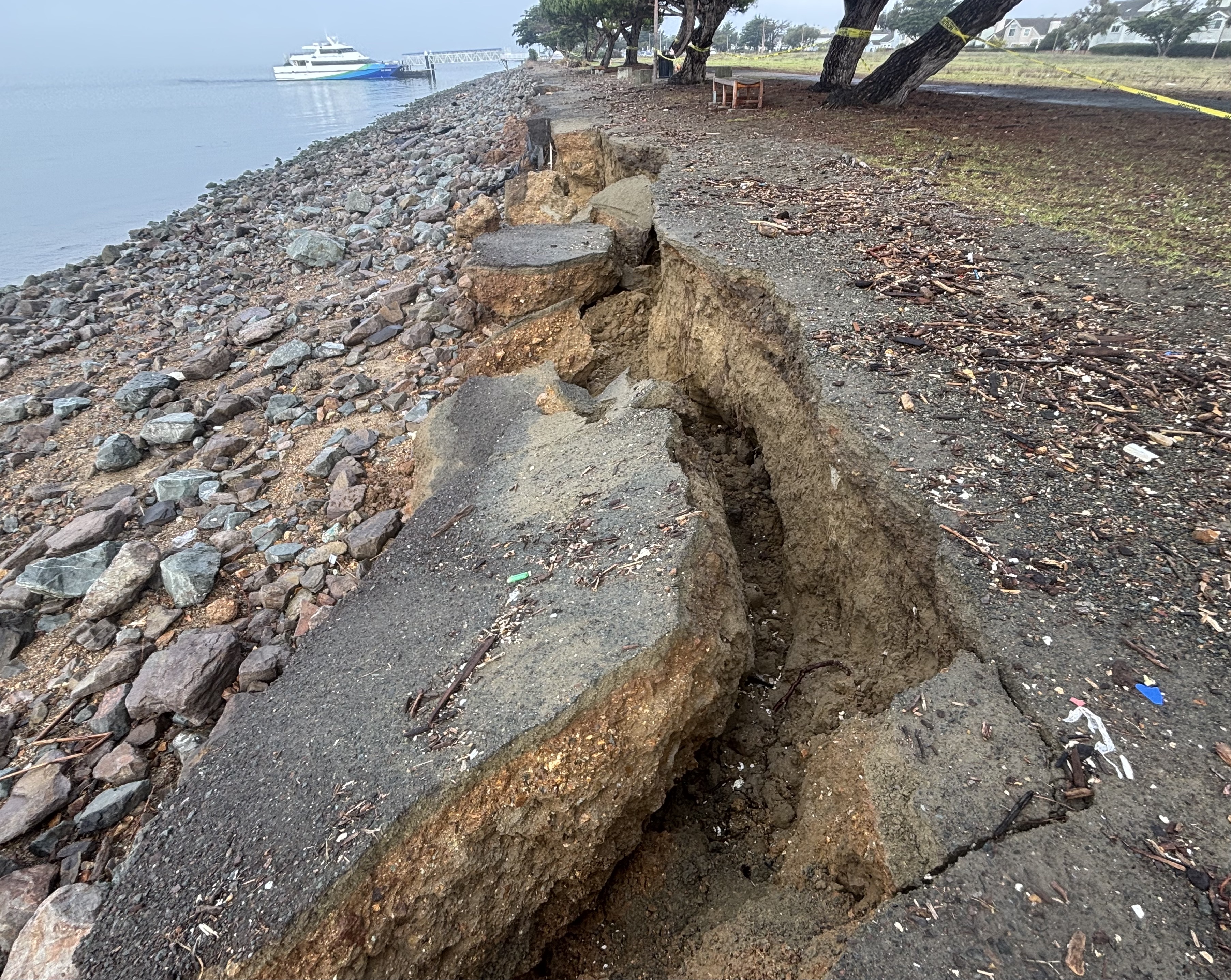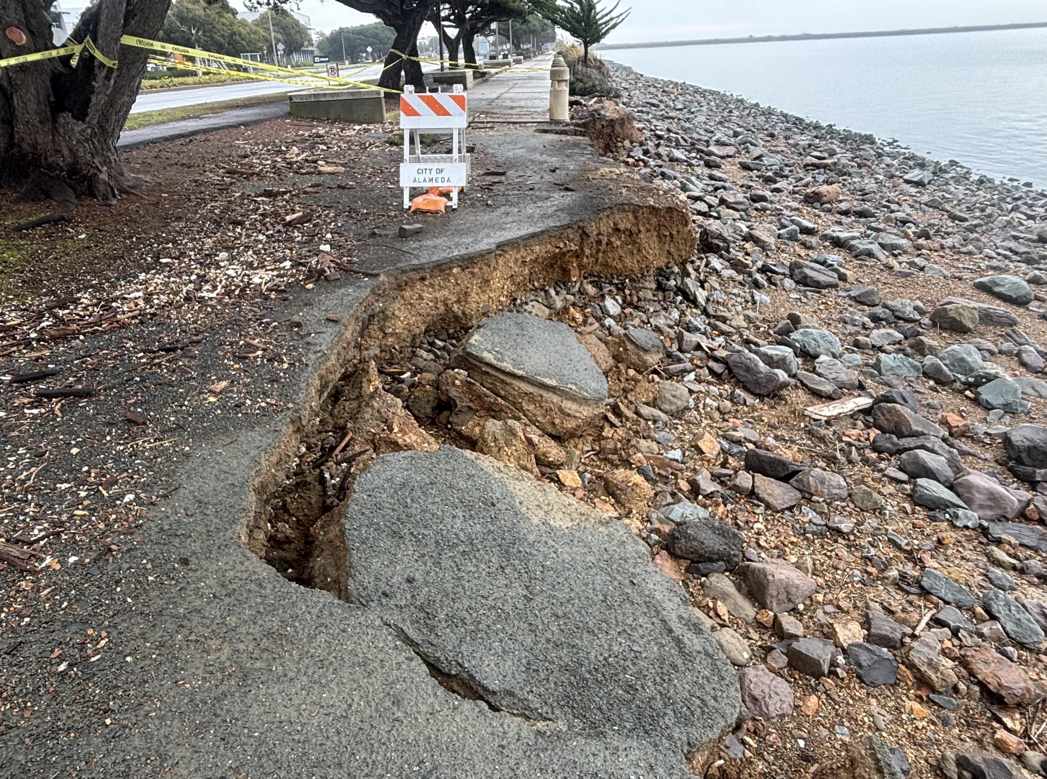 And the Bay Trail near the Harbor Bay Ferry Terminal is closed after large chunks of the trail broke away.